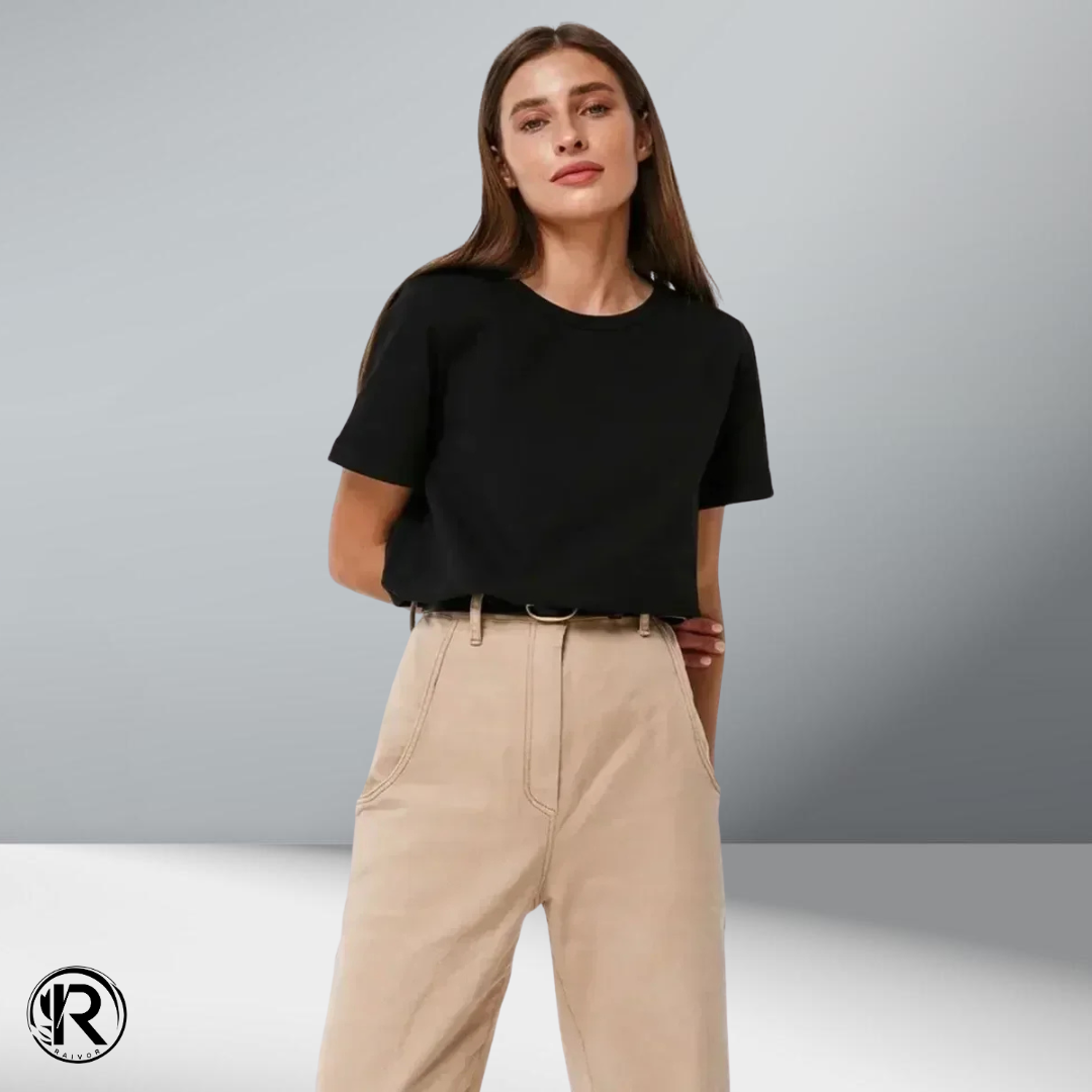 חולצת בייסיק אוורירית וקלאסית מבד כותנה, בגזרה משוחררת שמתאימה לכל לוק – לים, לעיר או לסיבוב עם חברות.