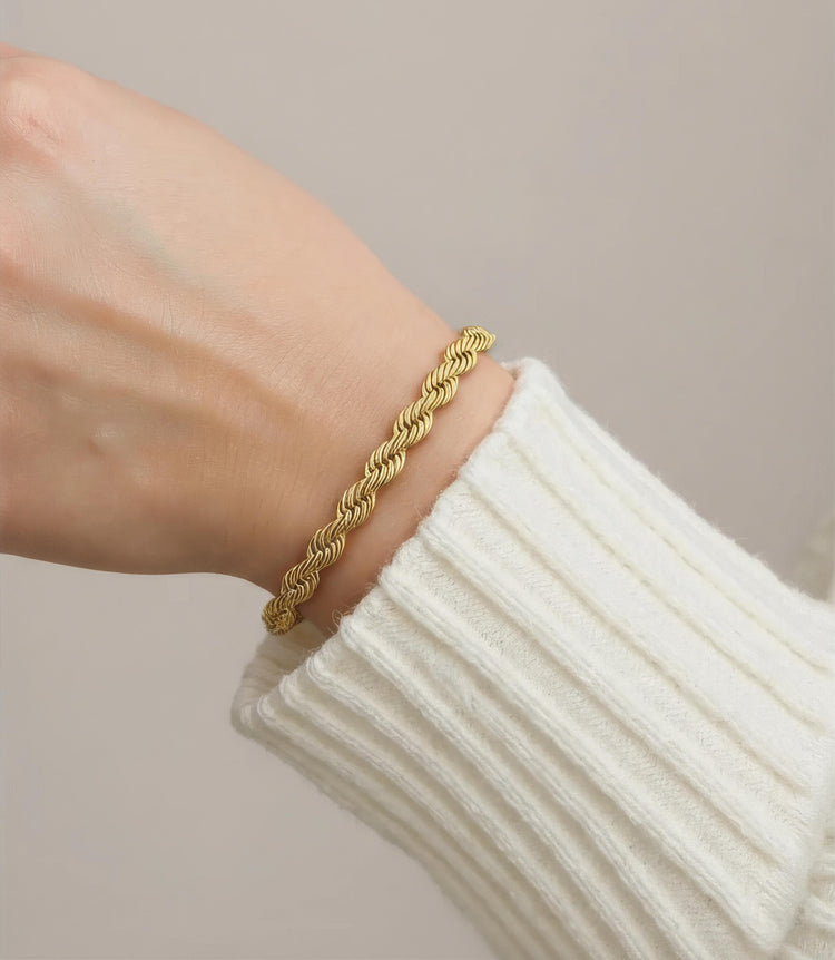צמיד בעיצוב קליעה עדינה בקווים נקיים ובגימור מוקפד. כל פרט תוכנן ליצירת מראה אלגנטי ומדויק, המשלב בין עיצוב קלאסי לבין תחושת מודרניות שקטה. המרקם השזור יוצר משחק אור עדין וברק אחיד המשדר יוקרה ונשיות מעודנת.