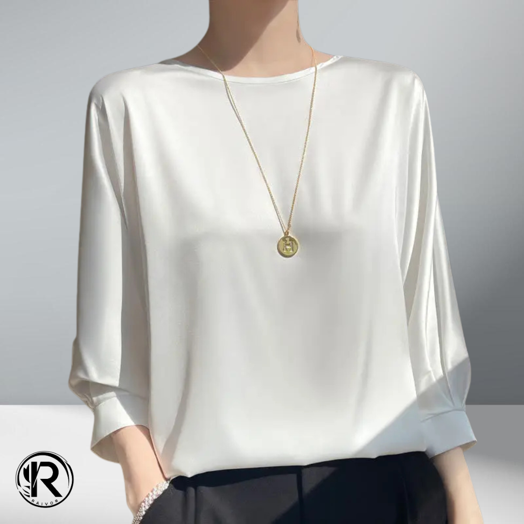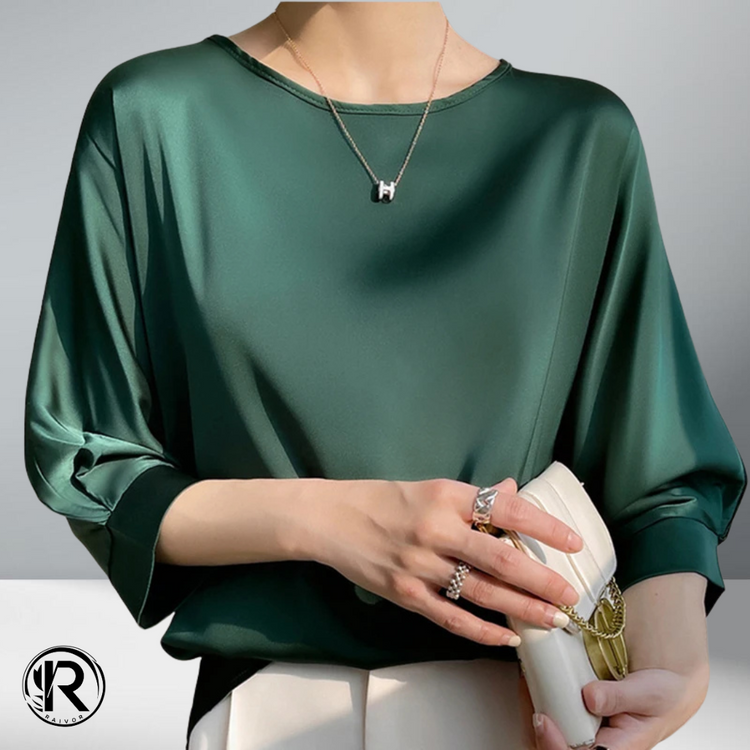 חולצת קיץ רכה עם מראה מבריק ונעים על הגוף. גזרה נוחה עם שרוול חצי, צווארון עגול והתאמה מושלמת ללוק יומיומי או ערב קליל.
