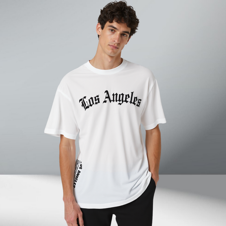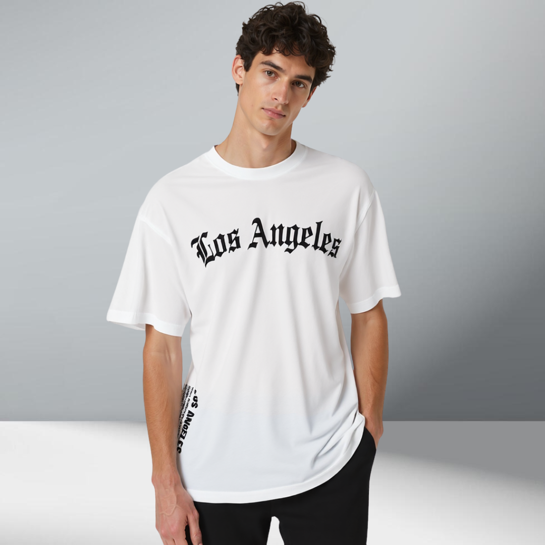 חולצת טי לגבר עם הדפס אותיות Los Angeles – שילוב מושלם של סטייל ונוחות לקיץ.