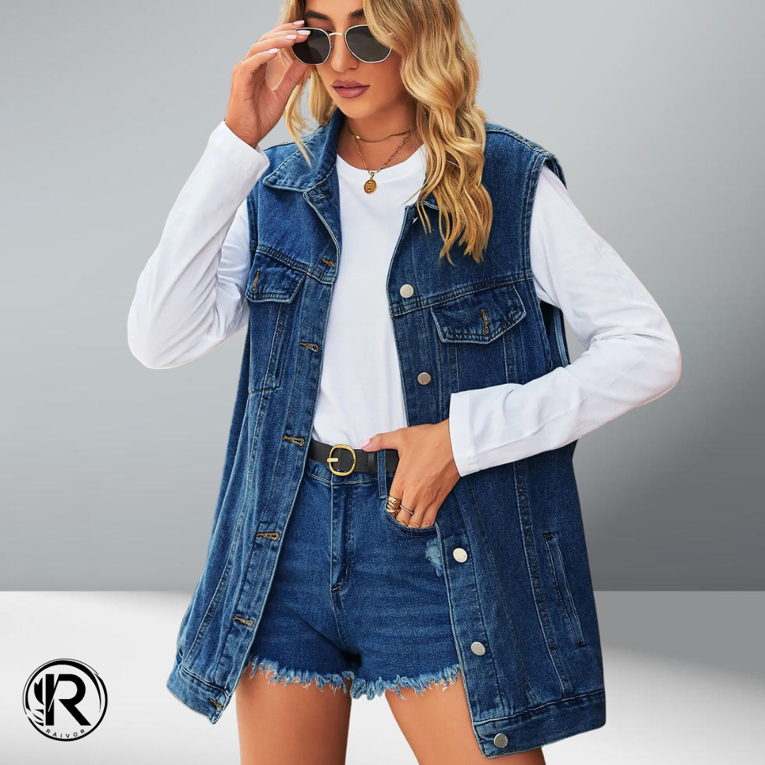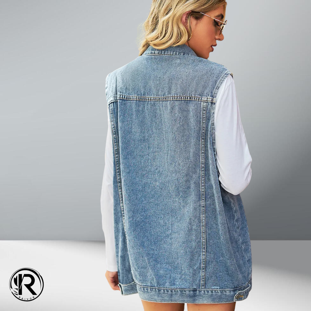 ווסט ג'ינס ארוך לנשים, בסגנון משוחרר ואופנתי – מושלם ללוק יומיומי בסגנון רחוב.